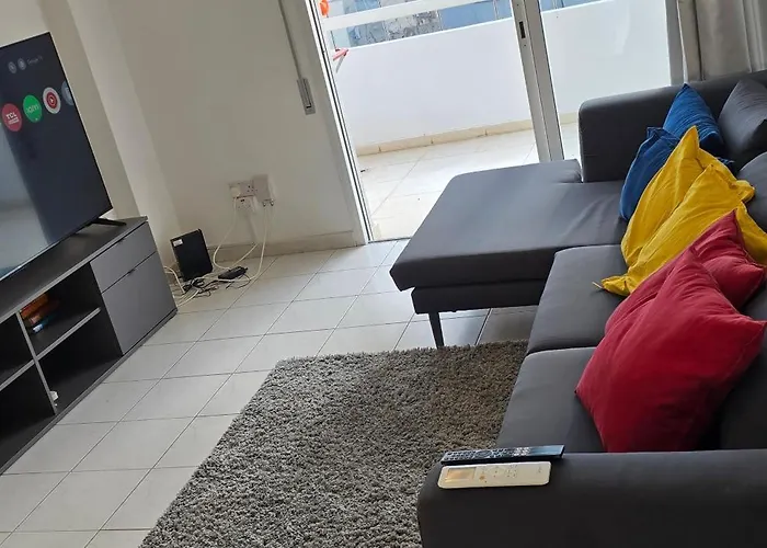 Executive 2Br Spacious Apartment, Limassol Center, 2 Balconies, Ideal Business Stay - Supercentro!, som har en terrass, ligger ungefär 13 minuter till fots från Strandpromenaden. I den här 100 m² stora lägenheten finns också Wi-Fi och en parkering.